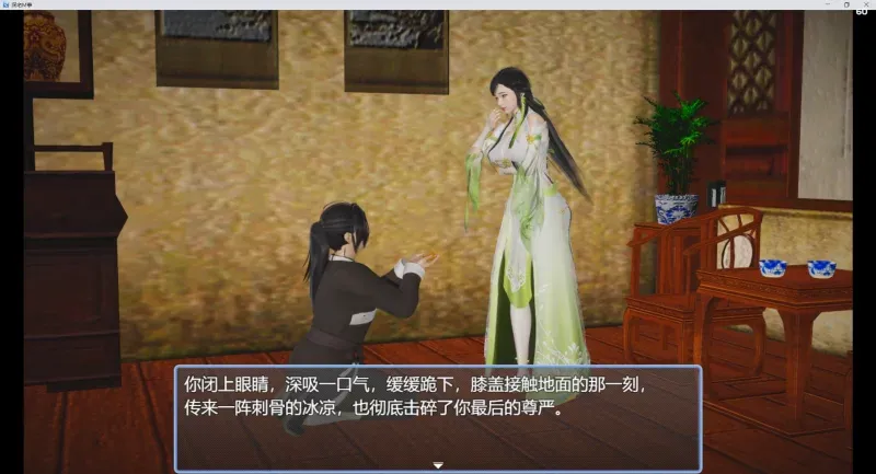 黑猫上周出的新游,黑猫是“超级软饭大师”、“工具人的日常”、“SM航空”、“熊猫魅魔的阴谋”等优质M游的作者。此作风格一如既往的女S男M,大概剧情是男主是豪门将家的公子,老爸战死了,他要继承家位,得受家里那些女主的重重考验,开始还被设计了,要当家奴反省自己。