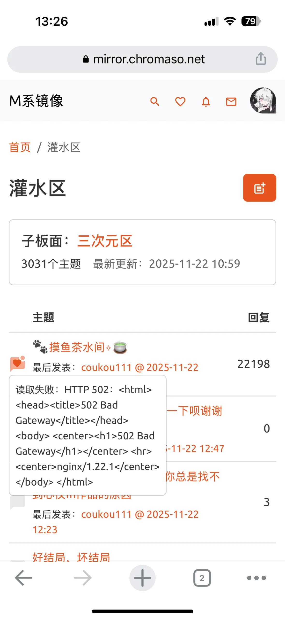 这两天报错有点频繁欸——随机点击任何页面都会有概率502