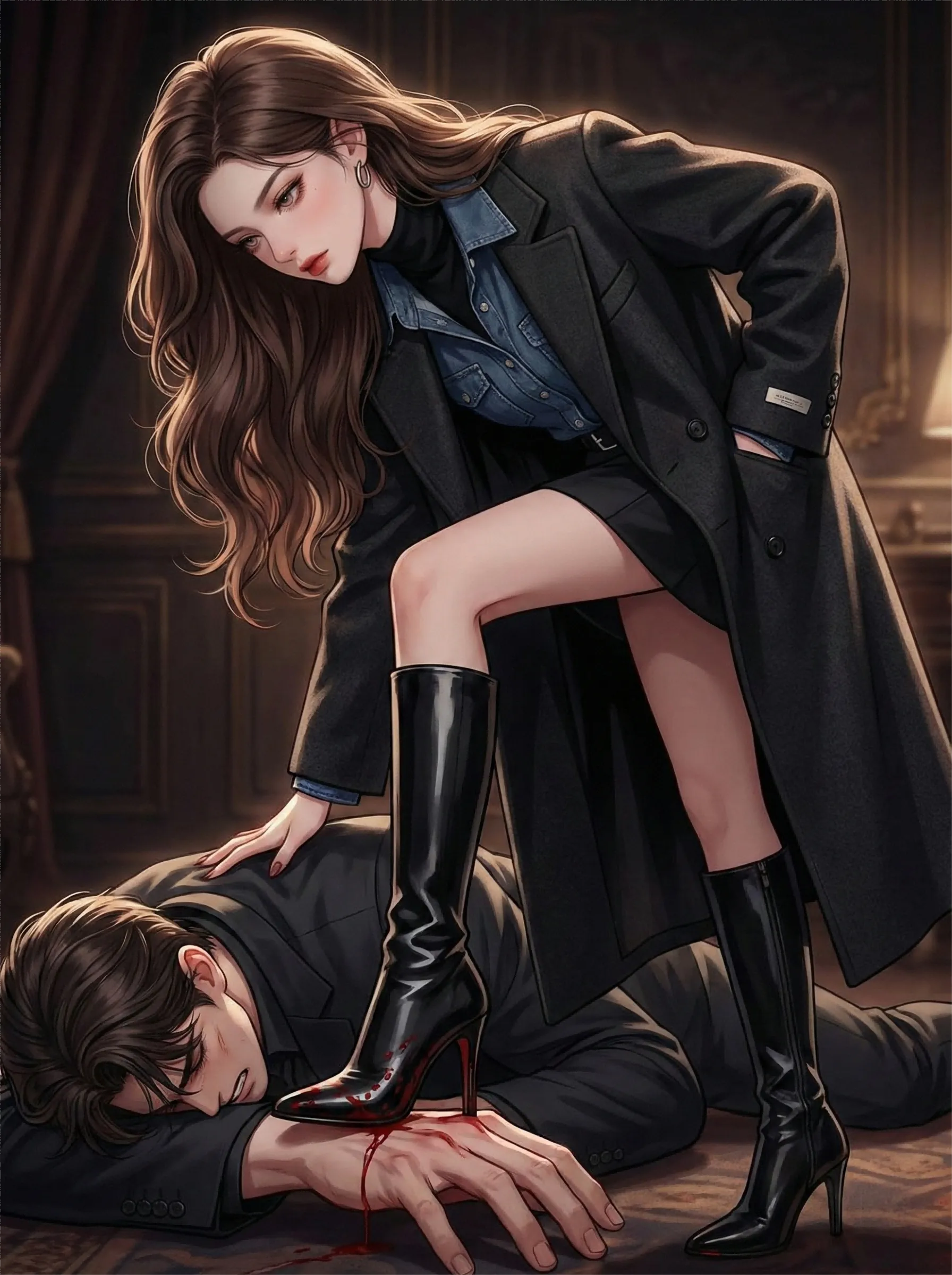 Jessica的鞋跟像征服者的靴子踩在沦陷城市的脖颈上一样,停在Becky的肩胛骨之间。Becky的额头依然紧贴水泥地,头发像泼洒的墨水一样漂浮在血油坑里,每一次呼吸都是一次微小、湿润的投降。