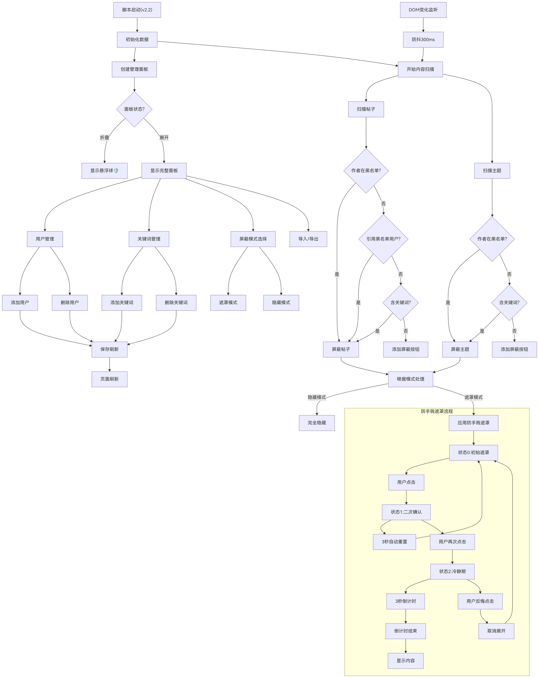 • 屏蔽词过滤:自定义屏蔽词(XP、引战、雷点),标题或内容命中即自动处理。