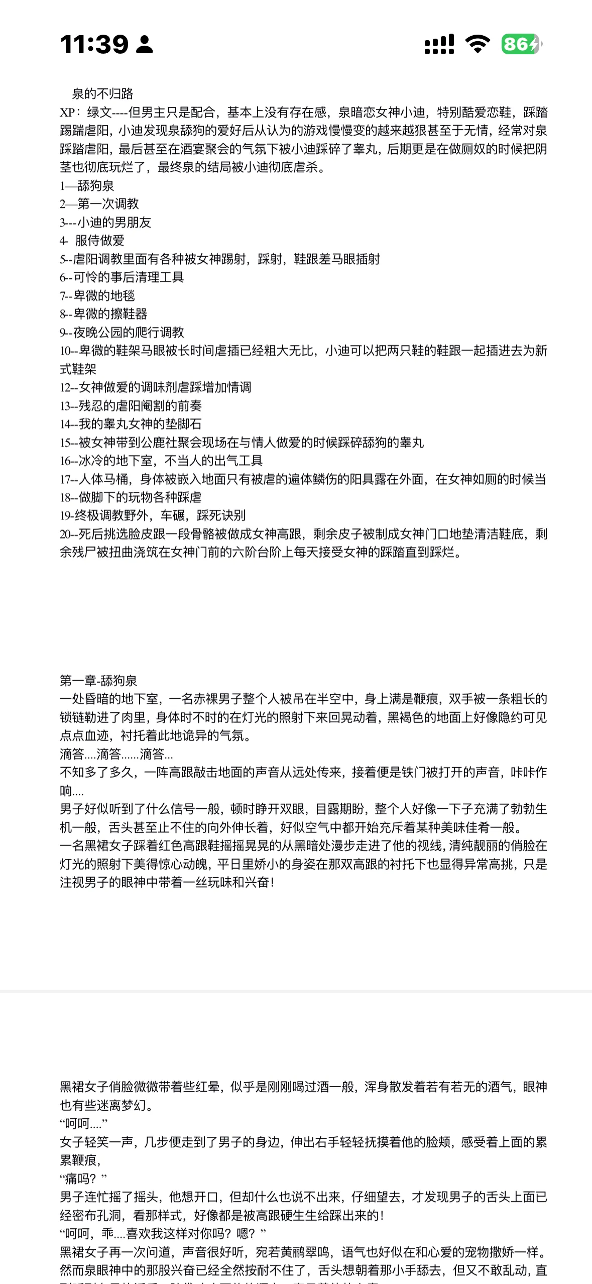 窒息,剧痛,不断从身体各个部位袭来,泉拼尽全力睁开眼睛,入眼的还是那条修长的大腿,但那坚硬的高跟这次却死死的踩在自己的喉咙上面。