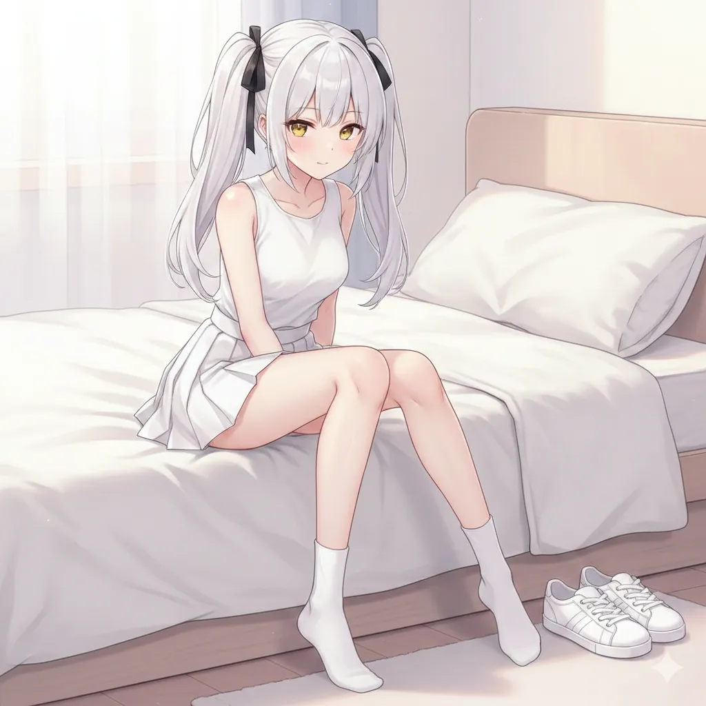 她穿着那身洁白的百褶裙,纤细的小腿下是一双干净的白色小短袜。