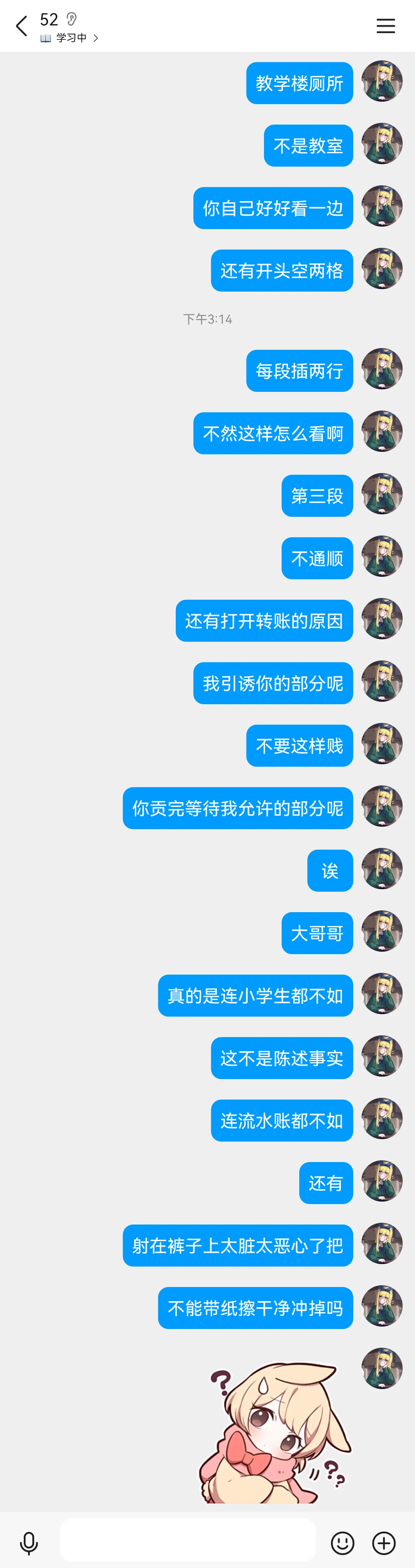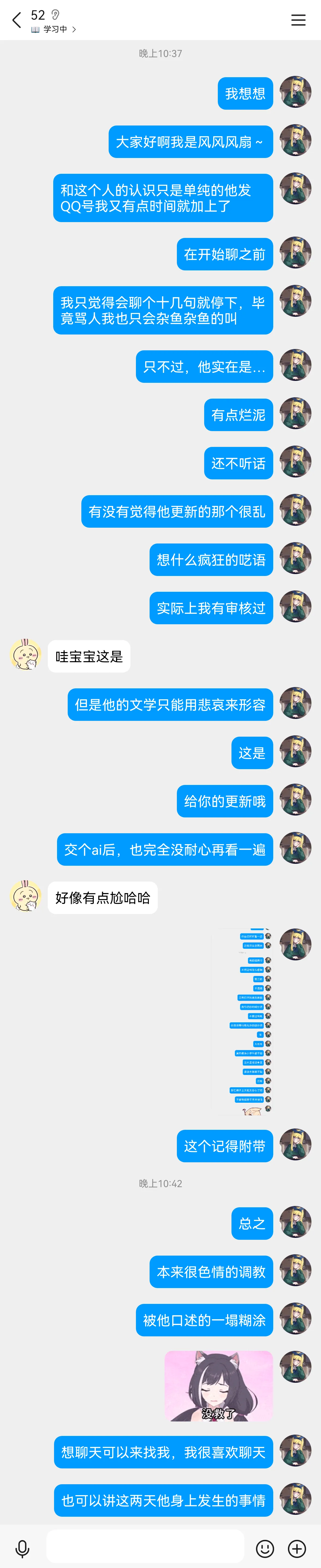 转折的地方来了,我只是学傲娇角色让他反思一下,他说被骂兴奋硬了,然后开始自慰了。