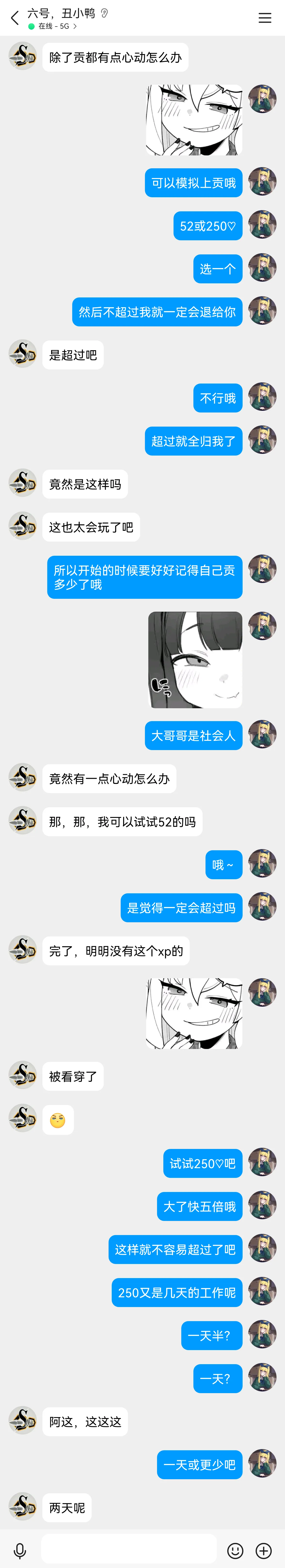 哦~有入场费52和问问题的4元。所以总贡261啊嘞啊嘞啊嘞,真的不是故意输的吗~
